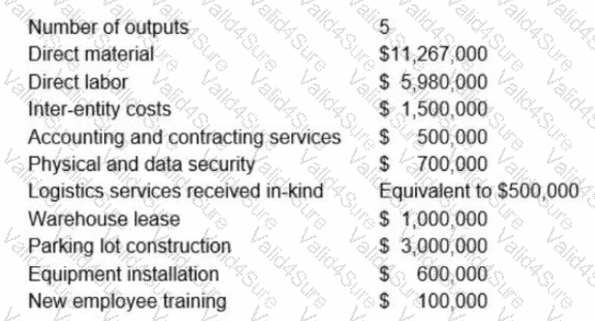 Based on FASAB standards, calculate the full cost of 1 unit of an output using the following information: