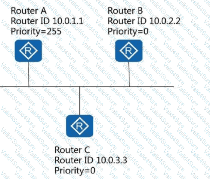 In the following figure, after the OSPF routers converge, in which state is the OSPF neighbor relationship between Router B and Router C?