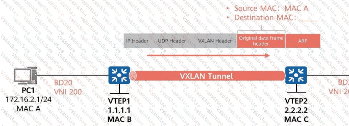When VTEP1 forwards the ARP request for PC1’s MAC address to VTEP2,