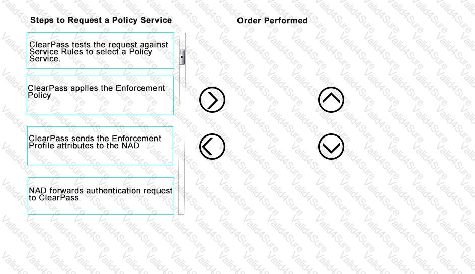 Use the arrows to sort the steps to request a Policy Service on the left into the order they are performed on the right.