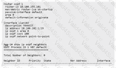 You are configuring OSPF between two CX switches but cannot see any neighbors. Based on the output, how would you fix the problem?