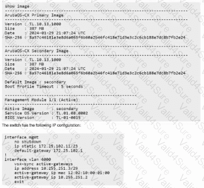 The HPE Aruba Networking CX 8320 VSX configuration is running the current software: