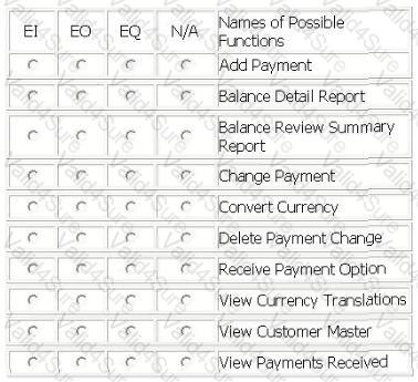 From the Names of Possible Functions listed identify the transactional functions for the Accounts Receivable application. Select N/A if a Name of Possible Function does not apply.