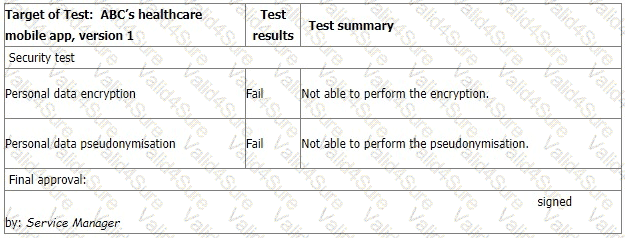 The IT Manager explains the test results should be approved by him according to the software security management procedure. The reason why the encryption and pseudonymisation functions failed is that these functions heavily slowed down the system and service performance. An extra 150% of resources are needed to cover this. The Service Manager agreed that access control is good enough and acceptable. That's why the Service Manager signed the approval.
