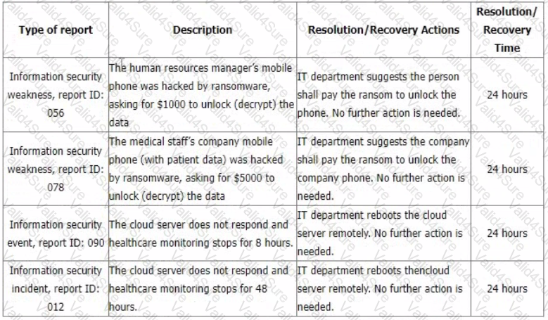 You are performing an ISMS audit at a residential nursing home that provides healthcare services. The next step in your audit plan is to verify the information security incident management process. The IT Security Manager presents the information security incident management procedure and explains that the process is based on ISO/IEC 27035-1:2016.