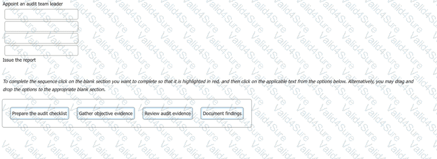 The following options are key actions involved in a first-party audit. Order the stages to show the sequence in which the actions should take place.