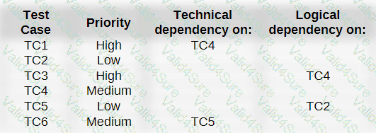 Which of the following test execution schedules BEST takes into account the priorities and technical and logical dependencies?
