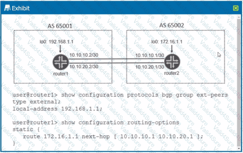 Referring to the exhibit, what is required for the BGP peering to establish?