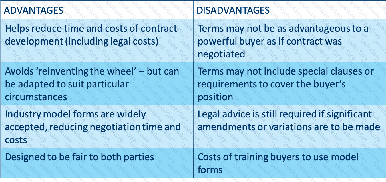 To expand its operation, Steel Co. decides to build a new plant. Despite of excitement, the senior management is very concerned about the complexity and risks of such project. Hugo, the procurement manager, suggests that the company can adopt a model form of contract. What is the advantage of using model form of contract?