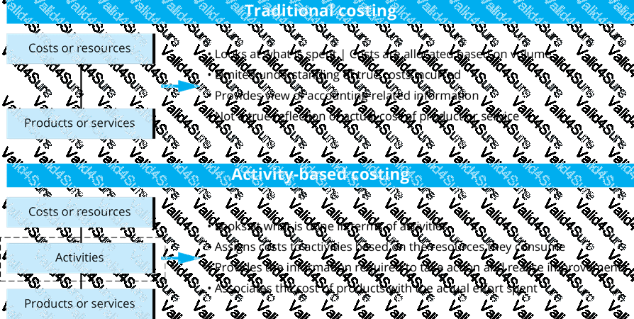 Which of the following are typical characteristics of activity-based costing (ABC) method? Select TWO that apply.