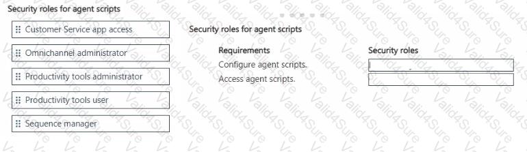 Which security roles should you use? To answer, move the appropriate security roles to the correct requirements. You may use each security role once, more than once, or not at all. You may need to move the split bar between panes or scroll to view content.