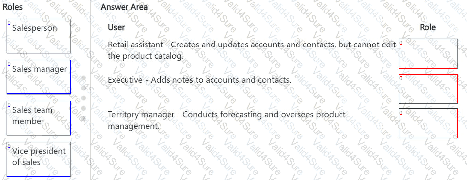 Using the principle of least access, which roles should you assign? To answer, move the appropriate roles to the correct users. Each role may be used once, more than once, or not at all. You may need to move the split bar between panes or scroll to view content.