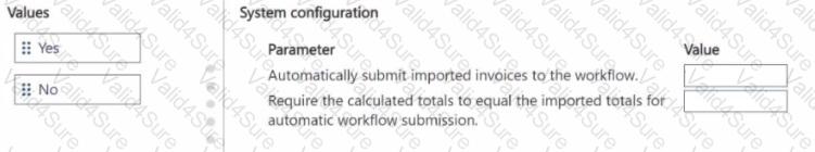 How should you configure the system? To answer, move the appropriate Value to the correct Parameter. You may use each Value once, more than once, or not at all. You may need to move the split bar between panes or scroll to view content.