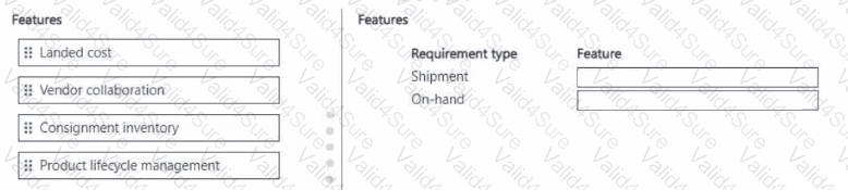 What should you configure? To answer, move the appropriate features to the correct requirement types. You may use each feature once, more than once, or not at all. You may need to drag the split bar between panes or scroll to view content.
