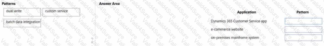 Which integration patterns should you use? To answer, drag the appropriate patterns to the correct applications. Each pattern may be used once, more than once, or not at all. You may need to drag the split bar between panes or scroll to view content. NOTE: Each correct selection is worth one point.