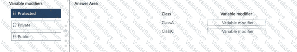 • Variables in ClassA must be accessible from ClassA and its child classes but not from other classes. ClassB is a class that inherits from ClassA.