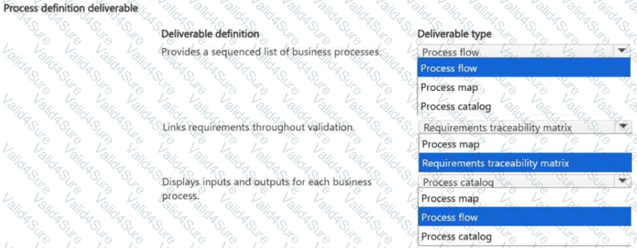 Which deliverable type should you identify for each deliverable definition? To answer, select the appropriate options in the answer area