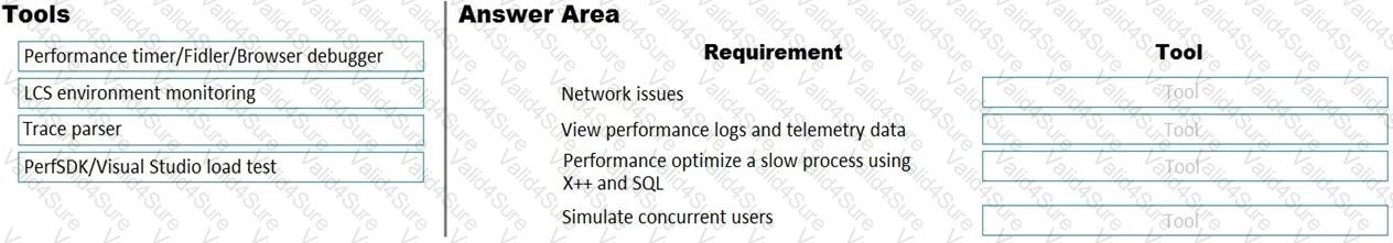 An organization uses Dynamics 365 Finance and Dynamics 365 Supply Chain Management. The organization is experiencing various performance issues and is looking for solutions. You need to recommend tools to determine the cause of the performance issues.
