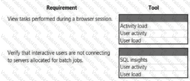 Which tool should you recommend for each requirement? To answer, select the appropriate options in the answer area.
