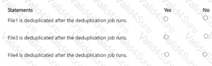 You have a server named Server1 that runs Windows Server and contains three volumes named C, D, and E. Files are stored on Server1 as shown in the following table.