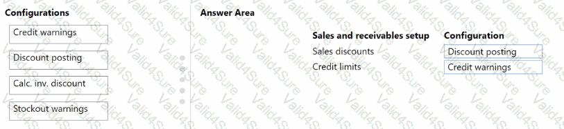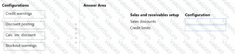 What should you configure for each setup area? To answer, drag the appropriate configurations to the correct sales and receivables setup. Each configuration may be used once, more than once, or not at all. You may need to drag the split bar between panes or scroll to view content.