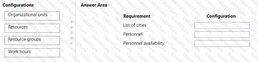 The company wants to set up service scheduling. The company needs to gather the following information: