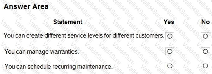 A service company is planning to implement a new system. You evaluate whether the company’s requirements can be met by using Dynamics 365 Field Service without customizations.