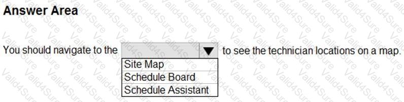 Where should you navigate to see the technician locations on a map? To answer, select the appropriate option in the answer area.