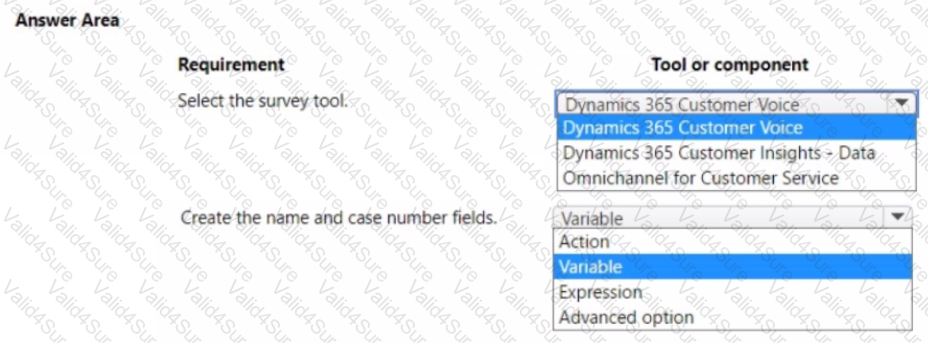 The survey tool must send the survey with the case number, contact name, and results linked to the case record.