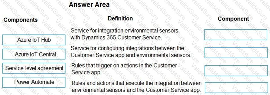 A company manufactures environmental sensors that can be monitored remotely. Match each component to its definition.
