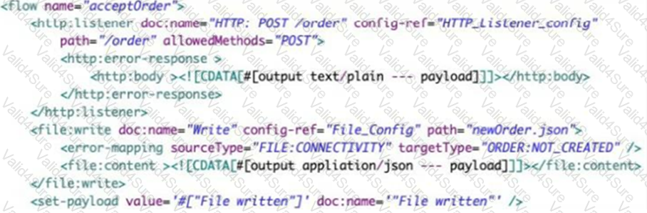 Refer to the exhibits The Mule application does NOT define any global error handlers.