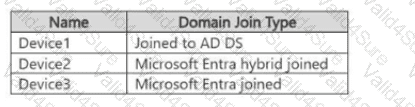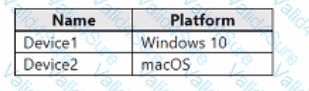 You have a Microsoft 365 tenant that uses Microsoft Intune and contains the devices shown in the following table.