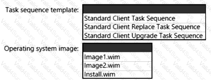 You need to identify which task sequence template and which operating system image to use for the task sequence. The solution must minimize administrative effort.