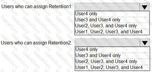 Which users can assign Retention1 and Retention2 to their emails? To answer, select the appropriate options in the answer area.