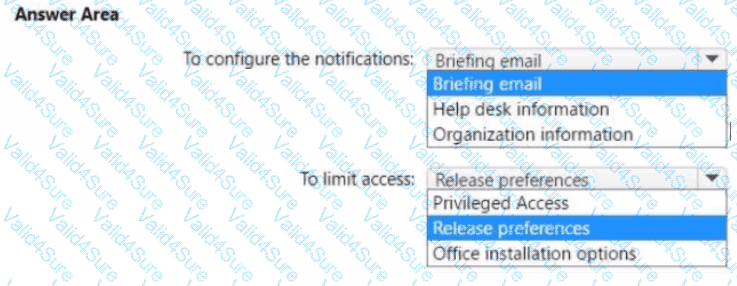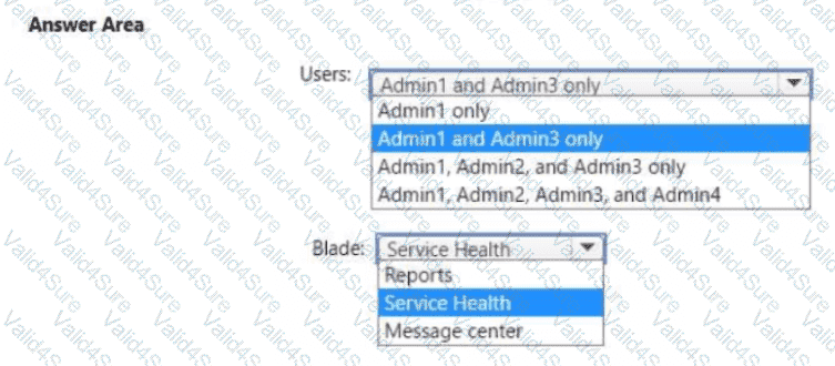 What should you configure in the Microsoft 365 admin center? To answer, select the appropriate options in the answer area.