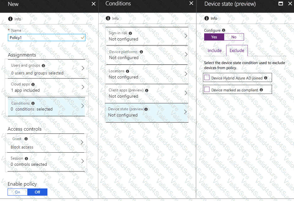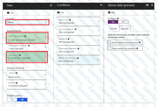 Which two additional settings should you configure in Policy1? To answer, select the appropriate options in the answer area.