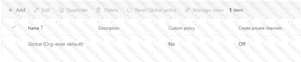 You need to ensure that the members of Group1 can create private channels. The solution must use the principle of least privilege.