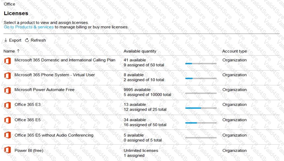 The assigned licenses are shown in the Licenses exhibit. (Click the Licenses tab.)
