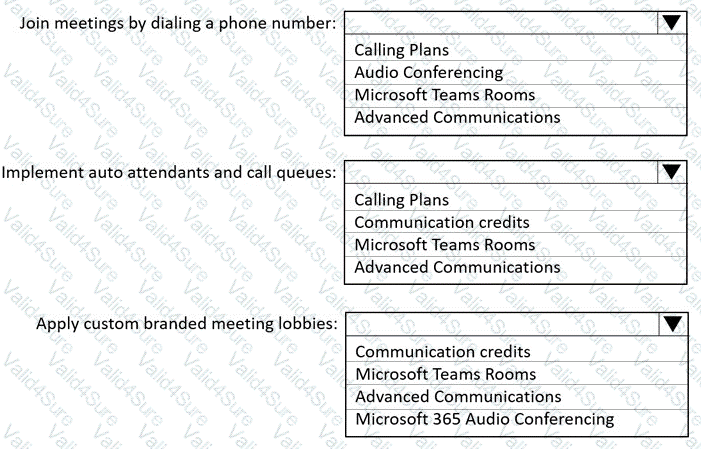 Which Microsoft Teams feature should you configure for each requirement? To answer, select the appropriate options in the answer area.