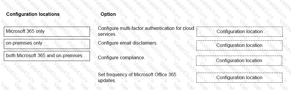 Match each item to the location where it willbe managed. To answer, drag the appropriate item from the column on the left to its location on the right. Each item may be used once, more than once, or not at all.