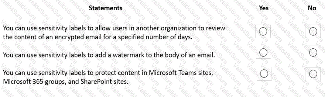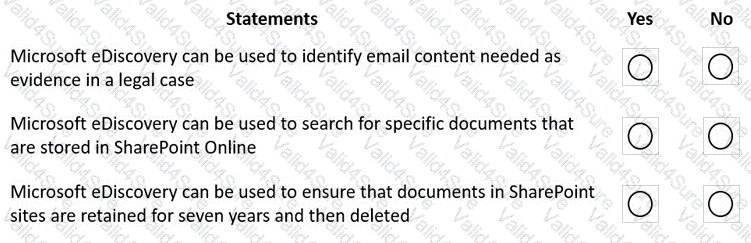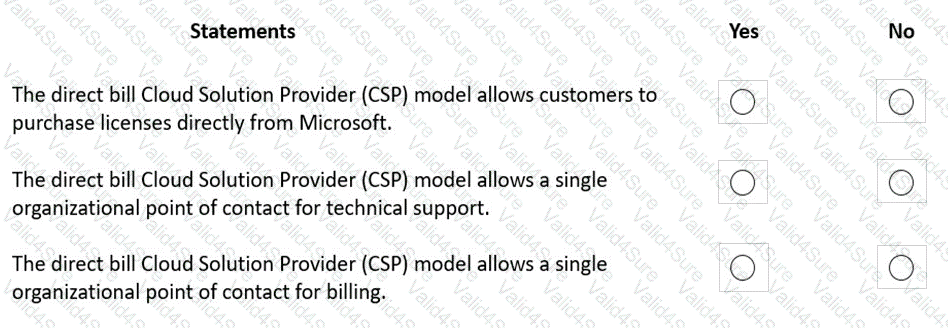 Instructions: For each of the following statements, select Yes if the statement is true. Otherwise, select No.