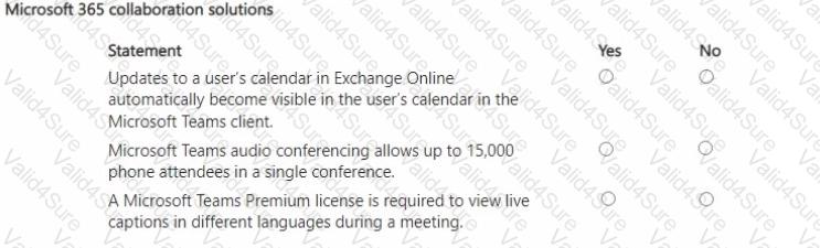 For each of the following statements, select Yes if the statement is true. Otherwise, select No.