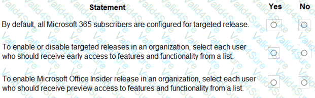 For each of the following statements, select Yes if the statement is true. Otherwise, select No.