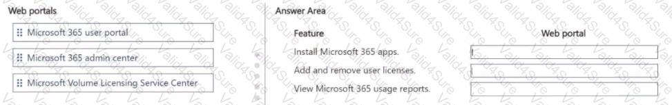Which web portals should you identify? To answer, drag the appropriate web portal to all. You may need to drag the split bar between panes or scroll to view content.
