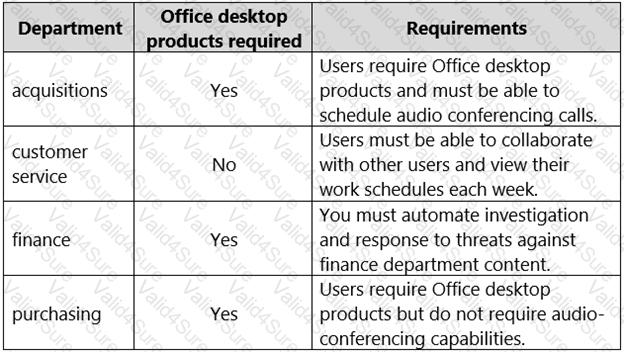 Which type of subscriptionshould you use for each department? To answer, drag the appropriate license types to the correct departments. Each license type may be used once, more than once, or not at all. You may need to drag the split bar between panes or scroll to view content.