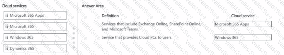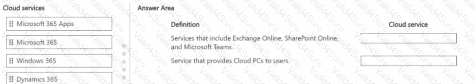 Match each cloud service to its definition.Each cloud service may be used once, more than once, or not at all.