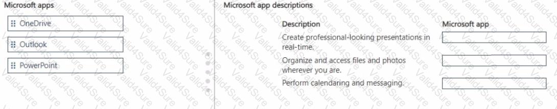 Match each Microsoft app to its description. To answer, move the appropriate Microsoft app from the column on the left to its description on the right. You may use each Microsoft app once, more than once, or not at all.