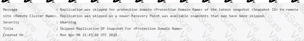 Replication was skipped for protection domain < Protection Domain Name > of the latest snapshot < Snapshot ID > to remote site < Remote Cluster Name > . Replication was skipped as a newer Recovery Point was available snapshots that may have been skipped.