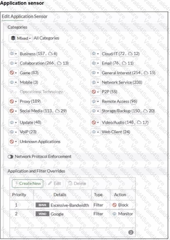 You have implemented the application sensor and the corresponding firewall policy as shown in the exhibits.