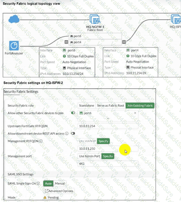 An administrator wants to add HQ-ISFW-2 in the Security Fabric. HQ-ISFW-2 is in the same subnet as HQ-ISFW. After configuring the Security Fabric settings on HQ-ISFW-2, the status stays Pending. What can be the two possible reasons? (Choose two answers)